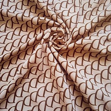 - Цвет и принт: бежевый фон с повторяющимся коричневым геометрическим рисунком