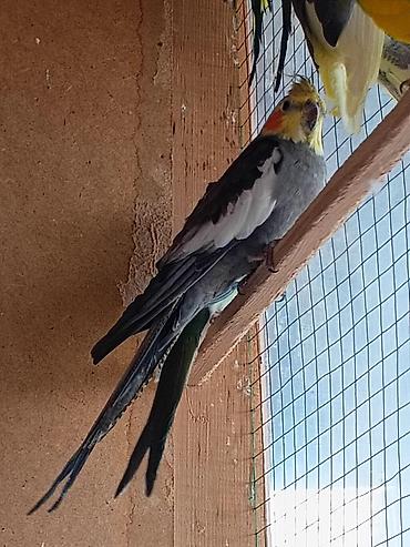 - Кореллы (нимфы): хохлатые попугаи с выразительными «щёчками». В наличии светлые (лютино) и тёмные окрасы. Спокойный характер, быстро привыкают к человеку, подходят для обучения простым свистам и мелодиям. Длина с хвостом до 30–33 см. Нужны жердочки разного диаметра, купалка, минеральный камень/сепия.