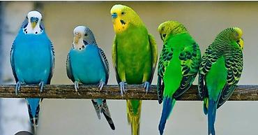 - Волнистые попугаи: классические домашние любимцы, активные и общительные. Разные окрасы — зелёные и голубые. Подходят для общения и первых шагов в обучении «разговору». Оптимальна клетка от 60 см в длину, игрушки, канареечная/попугайная смесь, свежая зелень.