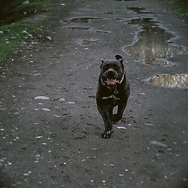 Щенок крупной породы, окрас черный, короткая блестящая шерсть. Морда широкая, с выраженными складками, уши естественные, хвост длинный. Глаза темные, внимательные. Тело крепкое, лапы мощные, подушк...