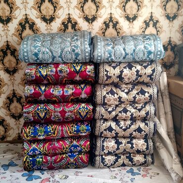 - Материалы: плотная ткань с жаккардовым переплетением, сатиновый/бархатный блеск; наполнитель – мягкий синтепон для объёма и тепла
