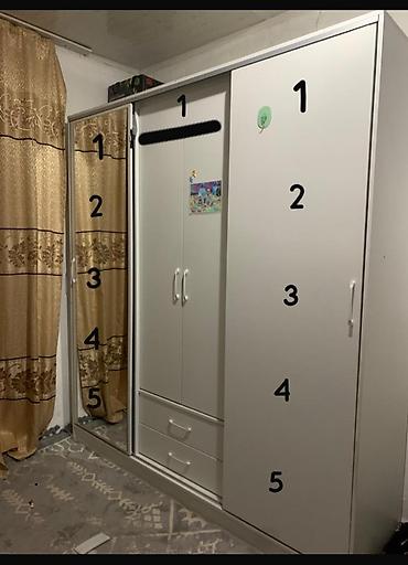 - Материал: ЛДСП белого цвета, кромки в цвет, фурнитура с вертикальными ручками.