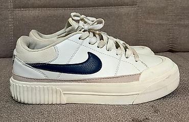 - Модель: низкопрофильные кеды с фирменным Swoosh по бокам и логотипом NIKE на пятке