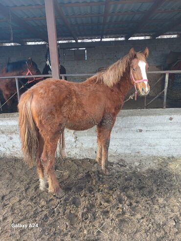 Лошадь верхового типа, гнедая масть. 2.жаш кунан эркек. Характеристики и особенности: - Пол: предположительно кобыла (по комплекции и животу на фото; уточняйте по осмотру). - Масть: гнедая, черные ...