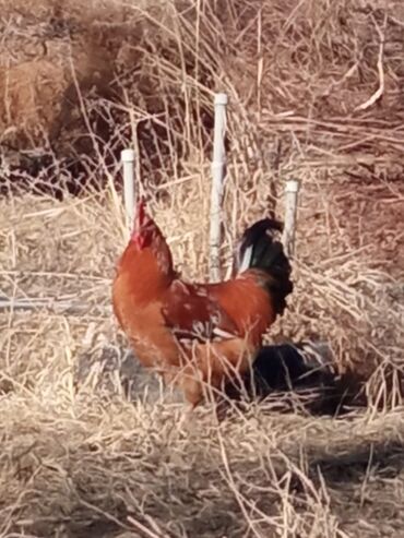 Петух мясо-яичного направления. Описание: - Крупный, мощный петух с ярким красно-рыжим оперением и черными хвостовыми косицами с зеленым отливом. - Выраженный листовидный гребень, крупные сережки,...