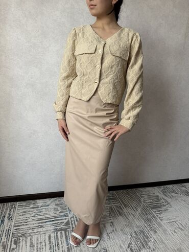 Юбка, Модель юбки: Прямая, Миди, Трикотаж, По талии, С пайетками