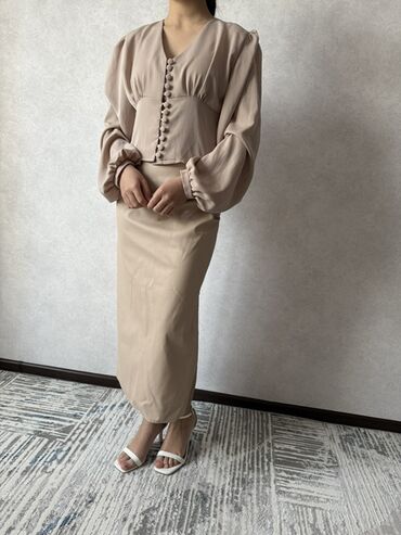 Юбка с пайетками - Размер: S–M - Длина: миди (прямой силуэт) - Посадка: на резинке по талии для удобной посадки - Материал: трикотажная основа, полностью расшита мелкими серебристыми пайетками, мя...