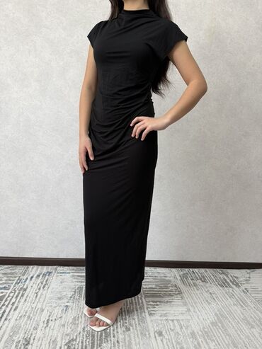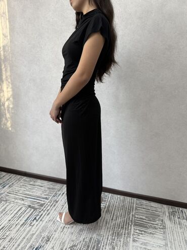 Вечернее платье в классическом чёрном цвете. - Прямой силуэт, мягкий атласный блеск - Тонкие бретели - Элегантные разрезы по бокам для свободы движения - В комплекте стильный цветочный чокер/ба...