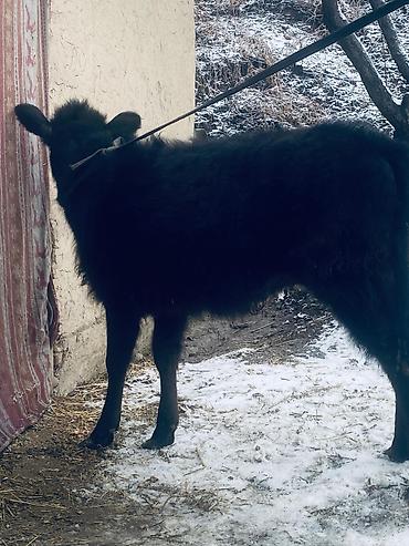 Бык-подросток черной масти, с биркой в ухе. Содержится в стойле, на грубом и сочном корме. Плотный костяк, развитая мускулатура, прямой постав ног. Подходит для откорма на мясо или для разведения. ...