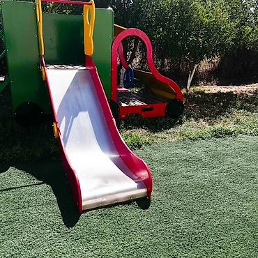 - Горка: стальной скат, борта из окрашенного пластика/фанеры, удобные поручни для подъема.