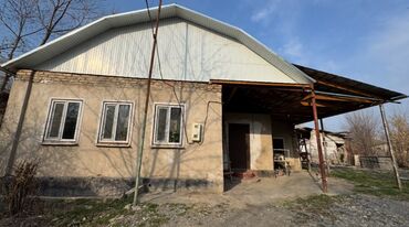 - Одноэтажный саманный дом с металлической крышей и большим навесом из профлиста у входа (можно использовать как зону отдыха или парковку).