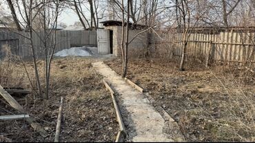 - Земельный участок огорожен забором, есть калитка и дорожка к хозяйственной постройке в глубине участка.