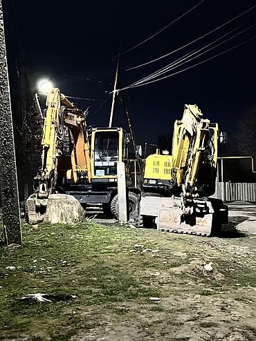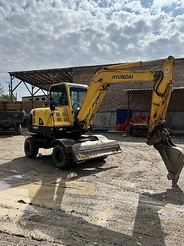 - Техника: колёсные экскаваторы Hyundai (на фото), маневренные, подходят для работы в стеснённых условиях и на городских улицах, минимальный урон покрытию.