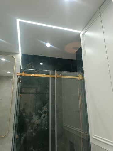 - Потолки: ровные, с встроенной LED-подсветкой, трековыми/линейными светильниками и нишами под карнизы.