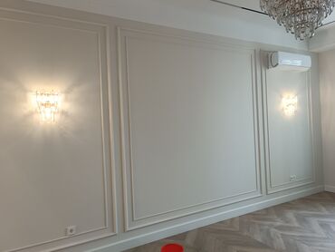 - Стены: идеальная геометрия, декоративные молдинги и панели, качественная покраска без шагрени.