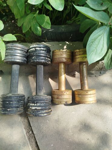 - Пара черных со штангами с рифленым хватом, наборные блины на обоих концах.