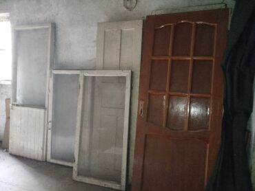 - Несколько дверных полотен разных форматов, включая коричневую филенчатую дверь с остеклением и светлые деревянные полотна.