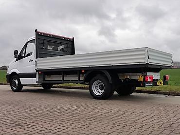 Бортовой малотоннажный грузовик Mercedes-Benz (шасси с одинарной кабиной и открытой платформой). Основные особенности: - Открытая металлическая платформа с откидными бортами по периметру — удобна ...