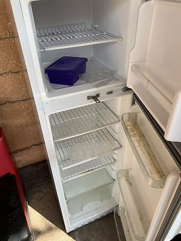 - Основное отделение с несколькими металлическими полками, лотком для яиц/формой для льда и прозрачным выдвижным ящиком для овощей/фруктов.