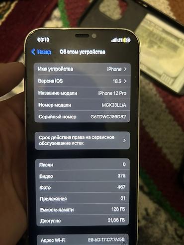 - Серийный номер и номер модели видны на фото раздела «Об этом устройстве» (MGK3LL/A)
