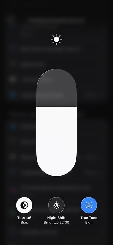 - На фото показаны работающие функции дисплея: режим «Тёмный», True Tone, Night Shift.
