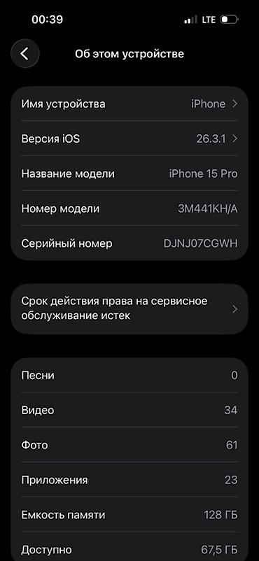 - Модель: iPhone 15 Pro (номер модели 3M441KH/A)