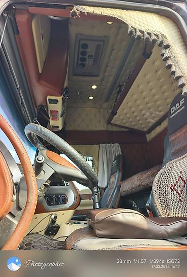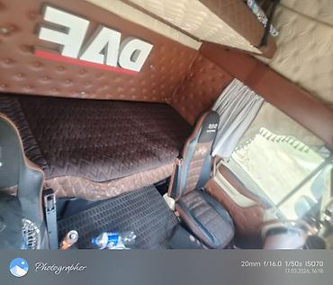 Тягач DAF (кабина со спальным местом) Описание: - Кабина с высокой крышей и двумя полками/спальными местами, шторки по периметру. - Панель приборов DAF: аналоговые спидометр и тахометр, блок вспом...Вход•Регистрация