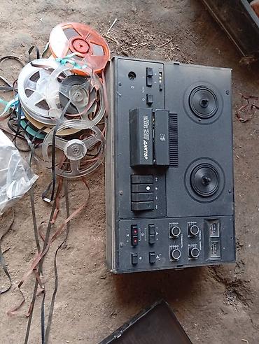 - Портативный магнитофон катушечного типа с встроенными динамиками