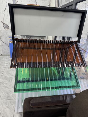 - Светопрозрачные листы: монолитные/гофрированные поликарбонатные панели в бронзовом, прозрачном и зелёном цветах — для навесов, террас, козырьков.