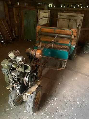 Мотоблок с прицепом и навесным оборудованием Комплект для хозяйства и дачи: - Мотоблок на пневматических колесах, бензиновый двигатель с воздушным фильтром, бак для топлива, ручной запуск, регулир...