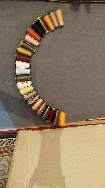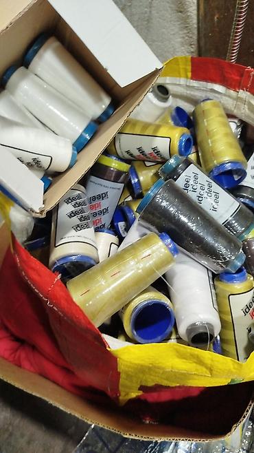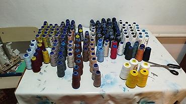 - Катушки швейных ниток различных цветов и оттенков: от белого и светлых бежевых до серых, коричневых, бордовых, синих, зелёных, чёрных, жёлтых и др. В наличии как меланжевые/глянцевые, так и матовые варианты. Катушки промышленного формата (бобины увеличенного объёма).