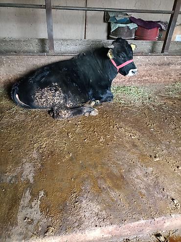 Бык мясного направления. - Окрас: черный, без белых отметин - Возраст по виду: молодой взрослый - Биркованный, с верёвочным недоуздком - Содержится на привязи в крытом стойле, удобный доступ к кор...