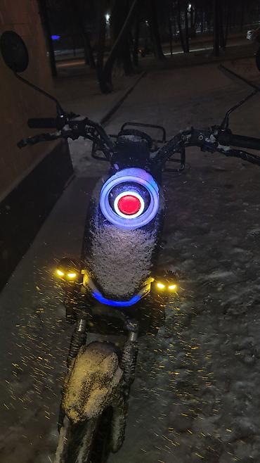 - Передняя круглая светодиодная фара с дневным ходовым кольцом, дополнительные нижние ДХО, задние габариты/стоп.