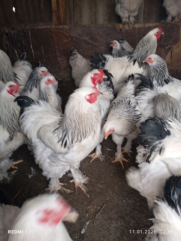 Петухи: Австролорп чернопёстрый, борковский бровистый. Молодые 9 месяцев.1300 сом. Для разведения.