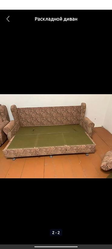 Продается Диван раскладной, классическая модель «книжка». 500 сом - Механизм трансформации: книжка — быстро раскладывается в полноценное спальное место.