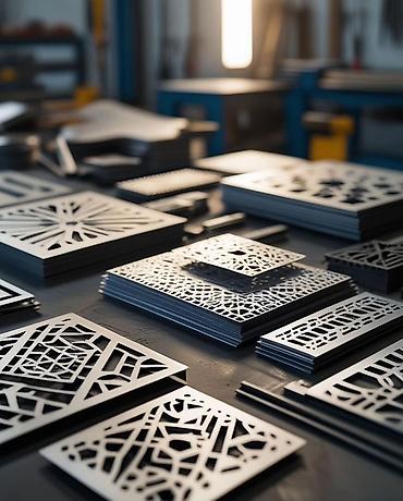 - Изготовление декоративных и технических деталей из листового металла: решетки, панели, накладки, таблички, вставки, вентиляционные экраны, элементы мебели и интерьера.