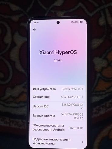 Redmi, Redmi Note 14, Б/у, 256 ГБ, цвет - Голубой, 2 SIM