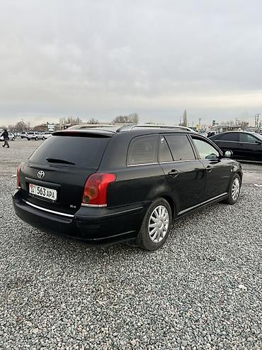 Toyota Avensis седан, чёрный цвет, на киргизских номерах (04 KG 194 ALH). Кузов и экстерьер: - 4-дверный седан, чёрный металлик - Легкосплавные диски - Тонированные стёкла - Задний спойлер-полка н...