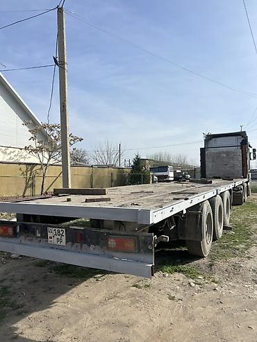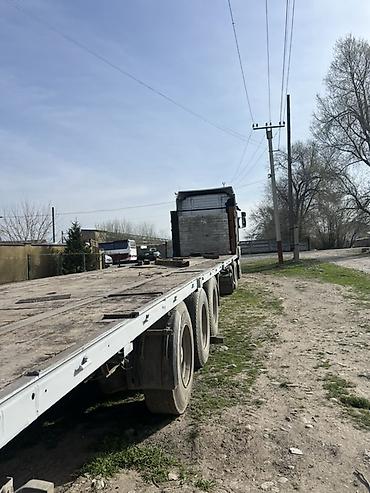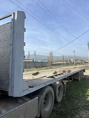- Полуприцеп-площадка трехосный, ровная настилная платформа без бортов, задний свес с фонарями и светоотражателями, усиленная передняя стенка. Подходит для перевозки длинномерных и негабаритных грузов, металлопроката, леса, стройматериалов, техники и т. п.