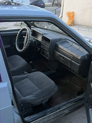 - Салон: передние раздельные сиденья с тканевой обивкой, простая панель приборов, рулевое колесо с чехлом, ручная регулировка стекол и зеркал, резиновые коврики.