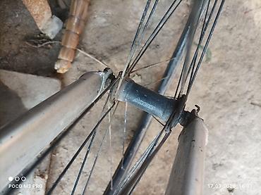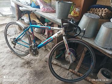 Велосипед с легкой рамой, выполненной в комбинации голубого и белого