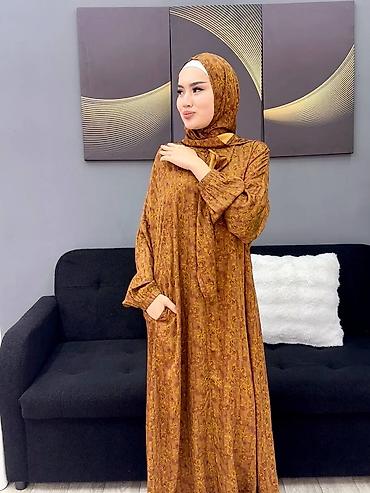 Платье миди для женщин plus size с длинным рукавом. - Свободный А‑силуэт с мягкими вертикальными складками спереди — визуально вытягивает силуэт и обеспечивает комфорт в движении. - Круглый вырез ...