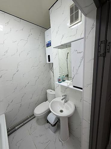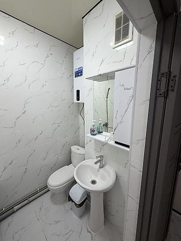 - Пол: в комнате — ламинат, в кухне — керамическая плитка.