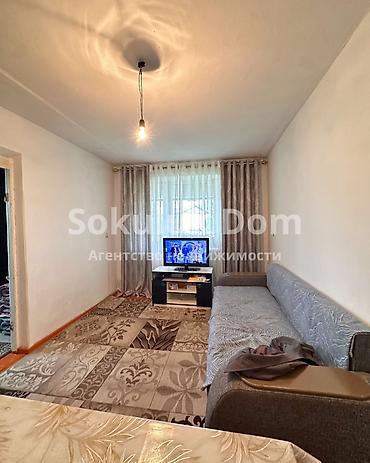 🏫Продается квартира в с. Сокулук, район Черемушки 🟡Комнаты: 3 🟡Этаж: 4/4 🟡Инфраструктура: В шаговой доступности расположены школа, детский сад, продуктовые магазины, остановка общественного трансп...
