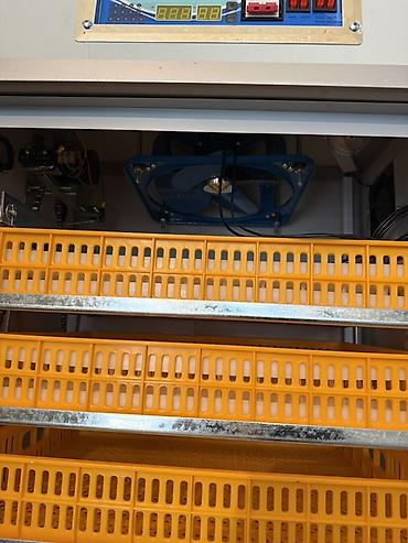 - Внутри: 4 выдвижных лотка из прочного пластика для яиц, механизм автоматического переворота (цепной привод), верхний осевой вентилятор для циркуляции воздуха.