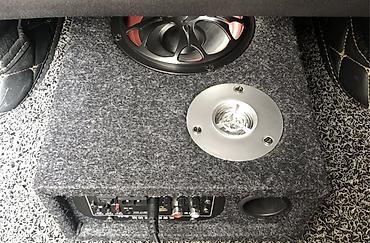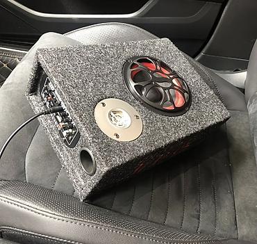 - Компактный ящик с обтяжкой карпетом, подходит для установки в салоне автомобиля или дома.