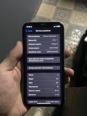 Айфон 11 березовый. Ёмкость памяти 128 ГБ. Ёмкость батареи 89 %