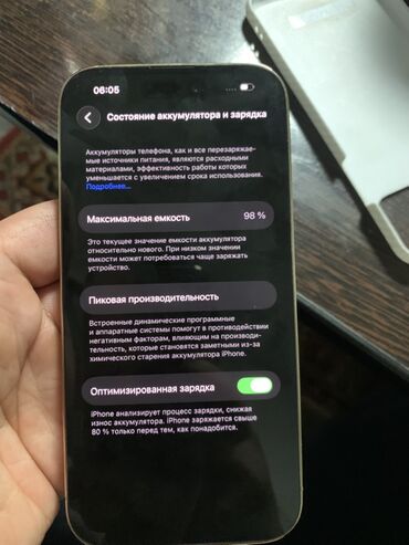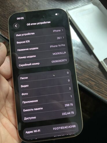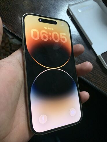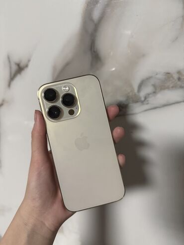 Смартфон Apple iPhone (серия с динамическим островком). Комплектация на фото: коробка, кабель USB‑C—Lightning, сам телефон в цвете «золото/бежевый». Ключевые особенности: - Дисплей с вырезом Dyna...