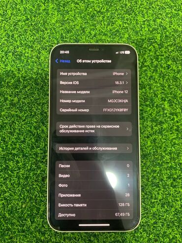 Айфон 12 сатылат абалы жакшы память 64гб АКБ 80% экран таза защитный экран менен колдонулуп журот бут озунуку родной телефон ачылган эмес трутон, фейс айди бар
