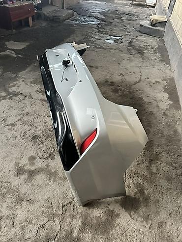Задний бампер для седана, окрашен в светло‑серебристый (с вставками глянцевого чёрного).